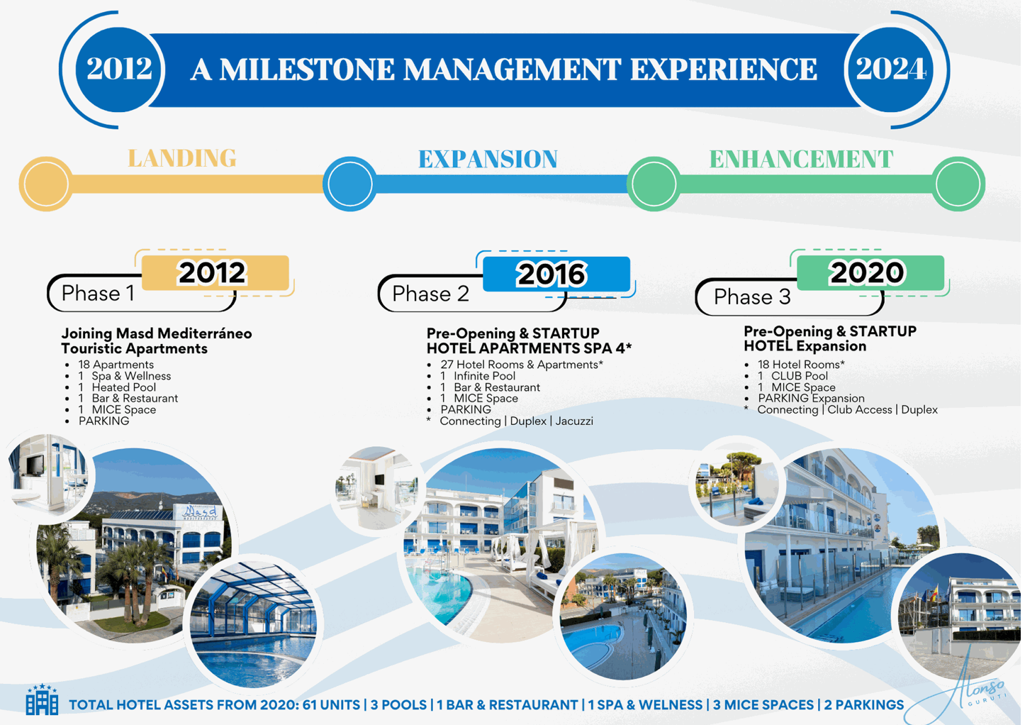 Mi enfoque se centró en la atención meticulosa a cada detalle, desde el diseño y la decoración hasta la formación del personal y la implementación de tecnología avanzada, con el objetivo de crear una experiencia única y memorable para cada huésped. A través de una planificación estratégica y una ejecución rigurosa, logramos establecer al Masd Mediterráneo como un destino exclusivo para familias y clientes de nivel adquisitivo medio - alto en la costa mediterránea, en un destino altamente competitivo y estratégico (Castelldefels).